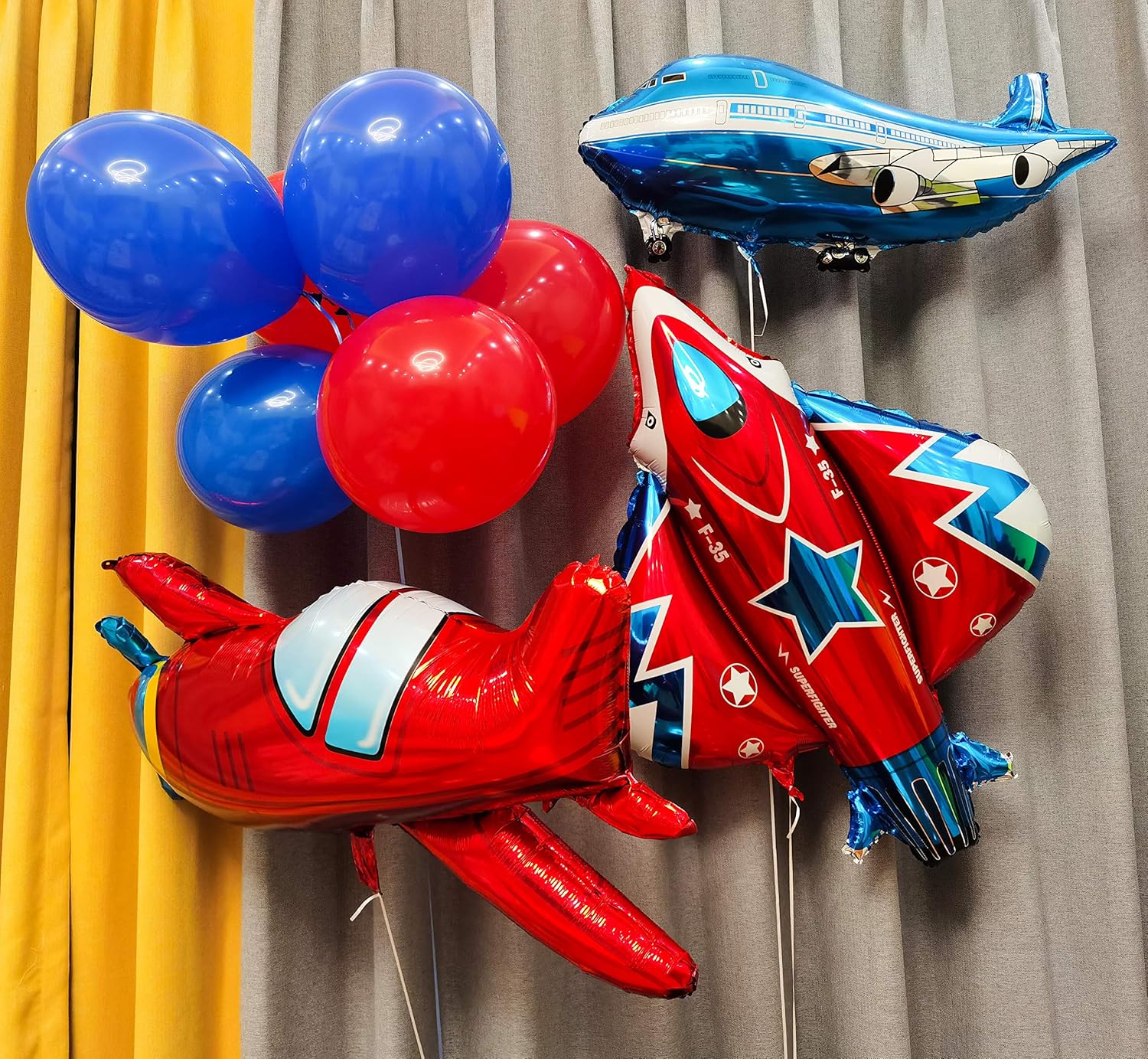 Airplane aviator themed party supplies,silver glitter birthday banner and garland decoration,latex and airplane foil balloons for up up and away felt party, kids plane theme birthday party. 5 out of 5 stars. Make a birthday party that will have your guests, and your special birthday boy, soaring when you shop for planes party supplies! We make everything easy from start to finish, saving you money and leaving you relax so you can enjoy his special day right along with him. If he's dreamed of being a pilot ever since he was old enough to look skyward and point excitedly, he'll love an airplane themed birthday party with decorations and supplies from shindigz.